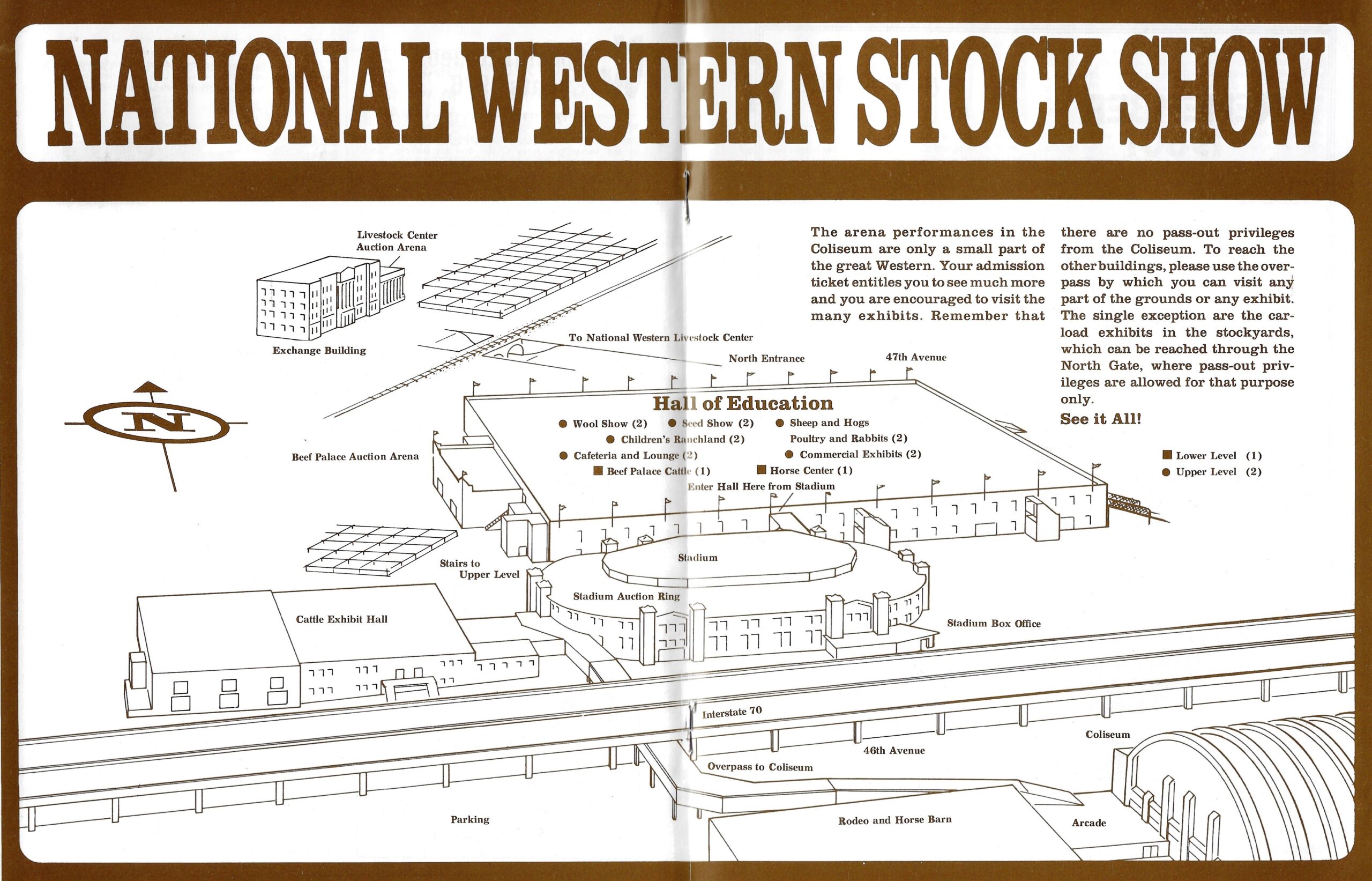 Realizing the needing for more space the National Western (NW) through the Western Stock Show Association (WSSA) developed its first expansion master plan in the late 1960s. The plan called for raising $2.5 million dollars to build the Hall of Education, a building designed for year around use. This building would occupy the two blocks immediately north / northeast of the Stadium Arena. The lower level would consist of livestock pens and stables with exhibit space on the second or main floor. It would have kitchens, the National Western Club, and the Beef Palace Auction Arena at the west end.